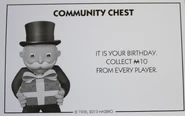 - It is {It's} your birthday. Collect $10 from every player. {Mr. Monopoly holds his gift which is wrapped and has the