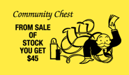 - From sale of stock you get $50. {$45.} <Mr. Monopoly, happily entangled in the tape of a stock ticker, waves cash (with no $ sign this time)>