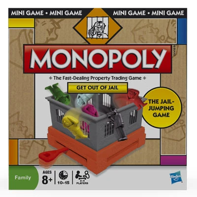 Monopoly Get Out Of Jail: The Jail-Jumping Game is a Mini-Game released by Hasbro in 2009 that can be used as a stand-alone game or as an addition to a "standard" Monopoly Board.