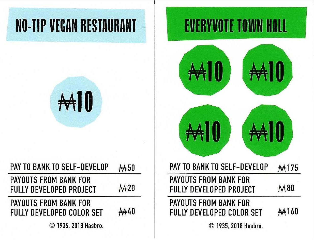 If any player lands on a fully-developed project, the Bank must pay both the manager of that project and the Community Fund the same payout amount. (This is double benefits to both the project manager and the Community Fund.)